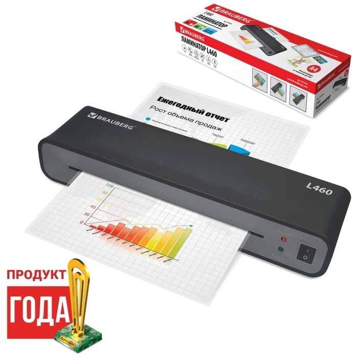 Ламинатор A4 75-125 мкм, 2 вала, скорость 30 см/мин, BRAUBERG L460