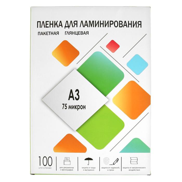 Пленка для ламинирования A3 303х426 мм, 75 мкм, 100 штук, глянцевые, Гелеос
