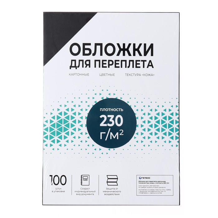Обложки для переплета A4, 230 г/м2, 100 листов, картонные, черные, тиснение под Кожу, Гелеос