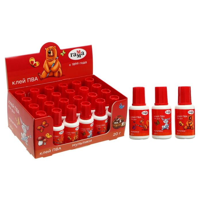 Клей ПВА Гамма «Мультики», 20 г, с кисточкой