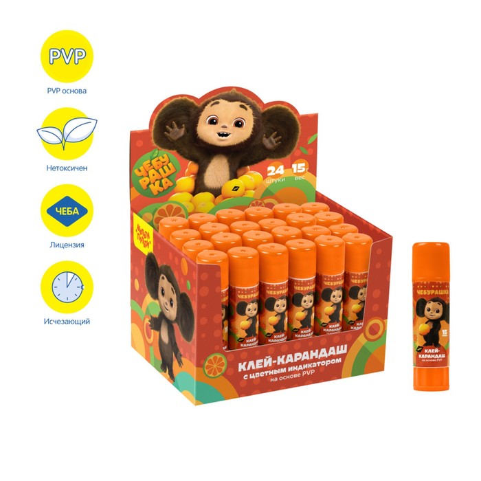 Клей-карандаш ПВП 15 г, Мульти-Пульти «Чебурашка», с цветным индикатором