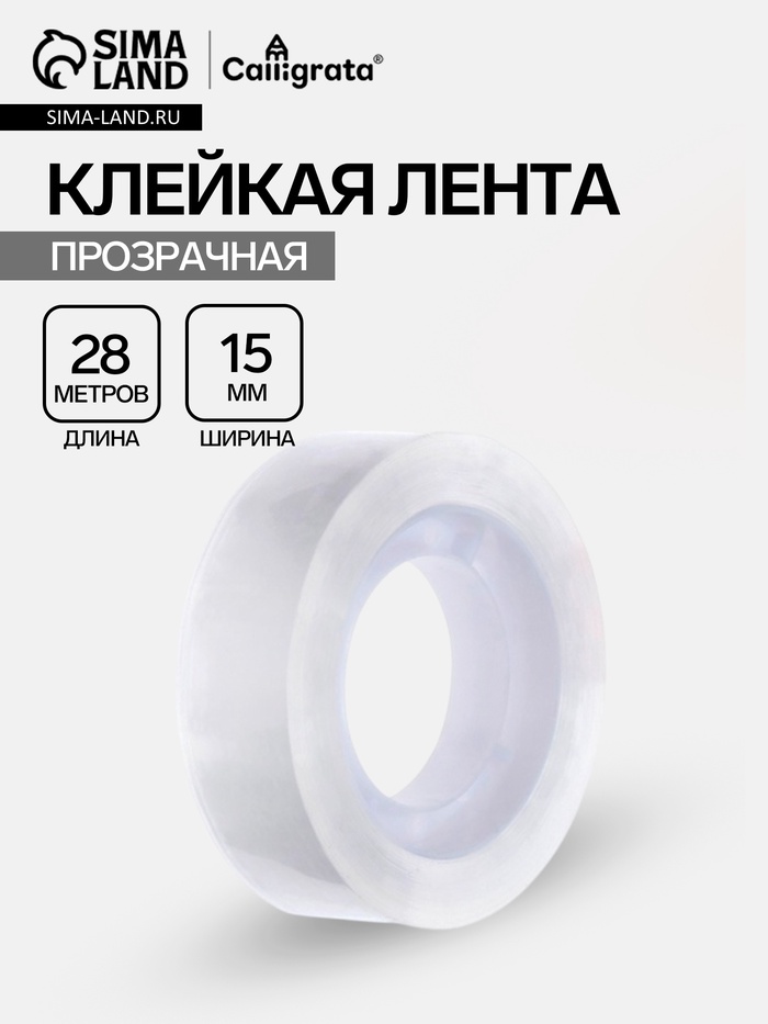 Клейкая лента канцелярская, 15 мм×28 м
