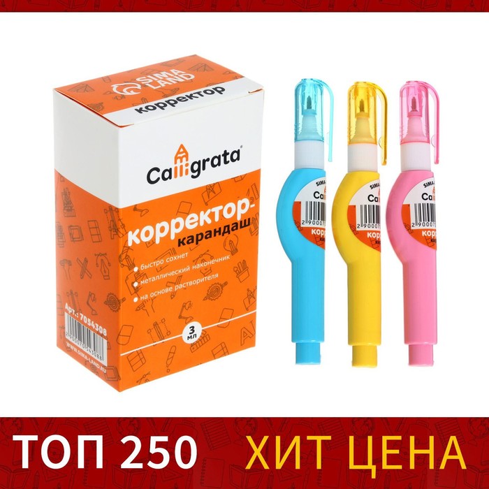 Корректор-карандаш 3 мл., металлический наконечник, на основе растворителя