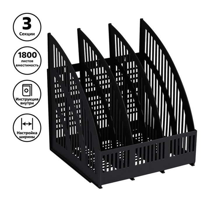 Лоток для бумаг сборный, вертикальный, 3 отделения, чёрный