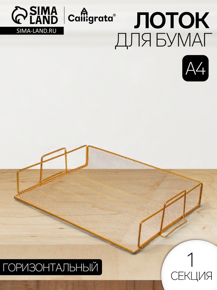Лоток для бумаг Calligrata, горизонтальный, металлическая сетка, 1 отделение, золото