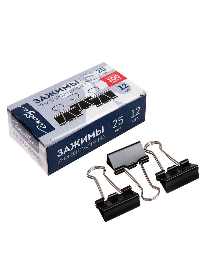 Набор зажимов для бумаг GLOBUS, 25 мм, 12 шт., чёрные