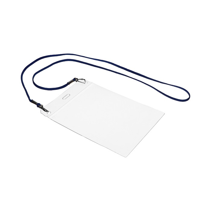 Бейдж вертикальный, внешний размер 153×105 мм, внутренний размер 123×95 мм, на синем шнурке 40 см