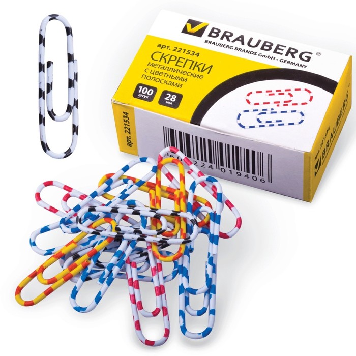Скрепки канцелярские 28 мм, цветные, 100 штук, картонная коробка