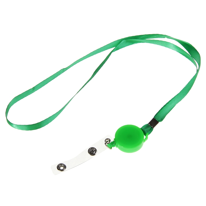 Лента для бейджа, ширина-10 мм, длина-85 см, с держателем-рулеткой 40 см и петлёй на кнопке, зелёная