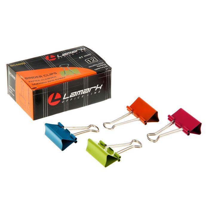 Набор зажимов для бумаг 41 мм (12 шт.) НЕОН, цветные