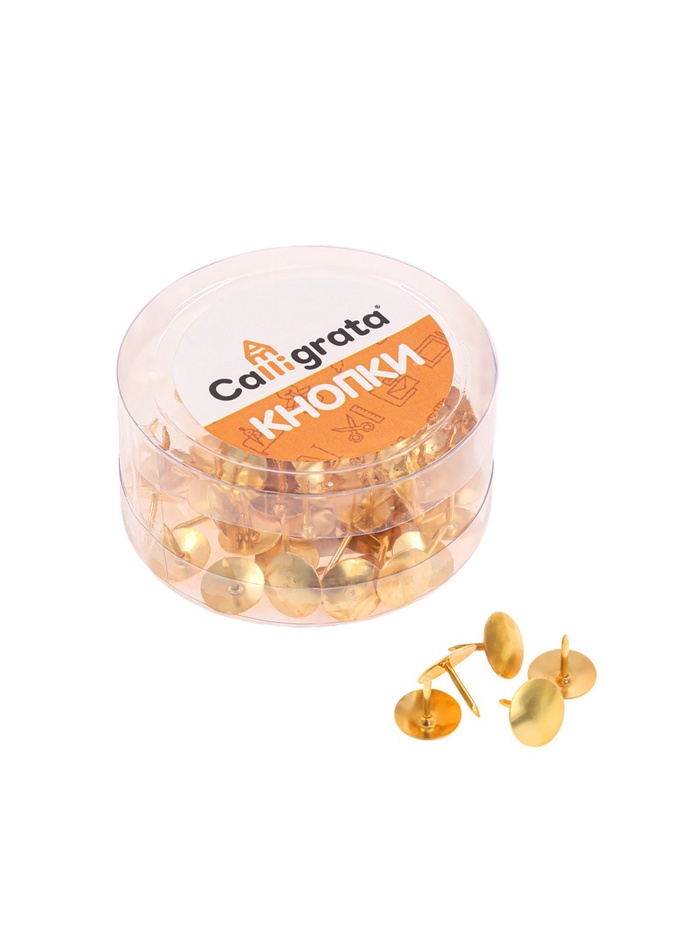 Кнопки канцелярские 12 мм., в картонной коробке, 50 штук, золотистые