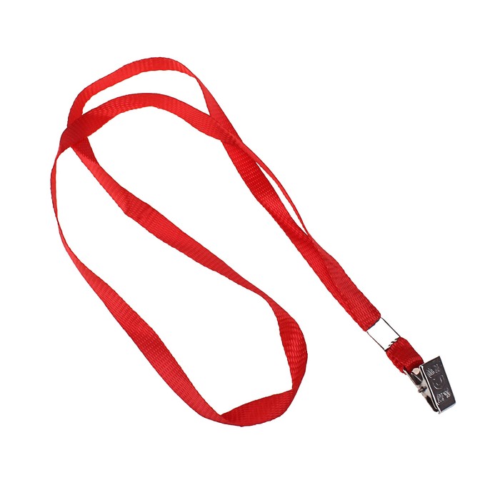 Лента для бейджа, ширина - 10 мм, длина - 80 см, с металлической прищепкой, красная