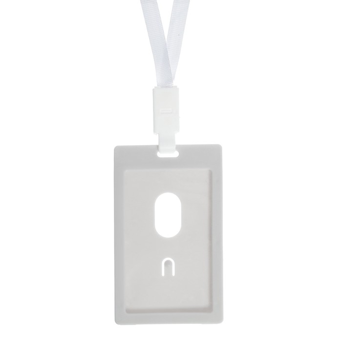 Бейдж - карман вертикальный, внешний размер 112×67 мм, внутренний размер 90×54 мм, белый, с белой лентой, жёсткокаркасный
