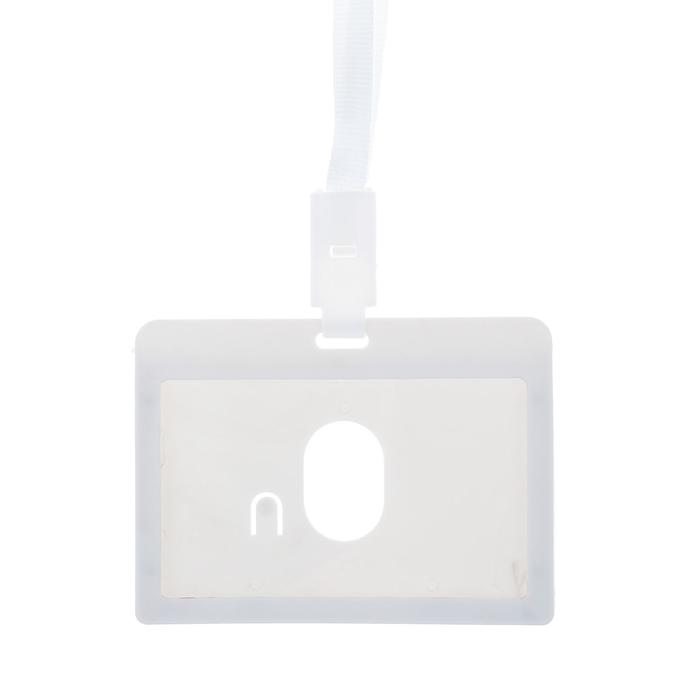 Бейдж - карман горизонтальный, внешний размер 100×74 мм, внутренний размер 90×54 мм, светло-серый, с лентой, жёсткокаркасный