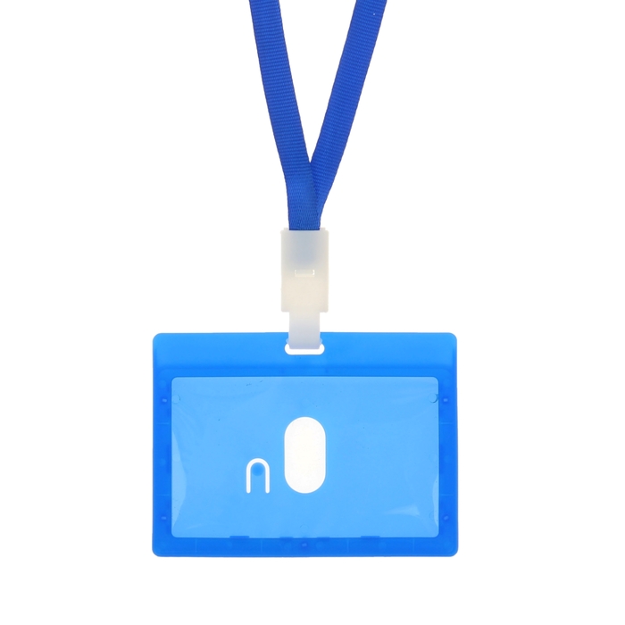 Бейдж - карман горизонтальный, внешний размер 100×74 мм, внутренний размер 90×54 мм, с синей лентой, жёсткокаркасный, синий