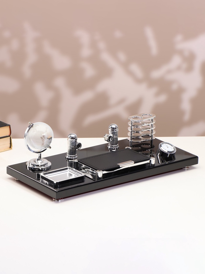 Набор настольный 6в1 (блок д/бумаг, подст. д/печати, карандашница, часы, визитница,глобус)