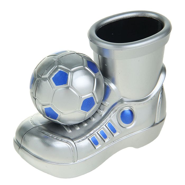 Подставка для пишущих принадлежностей "Ботинок с мячом", серебристый
