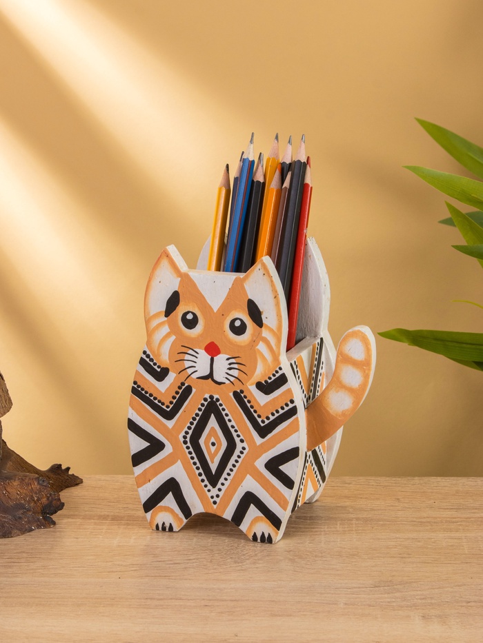 Подставка под ручки "Котик" албезия 12х8х15 см