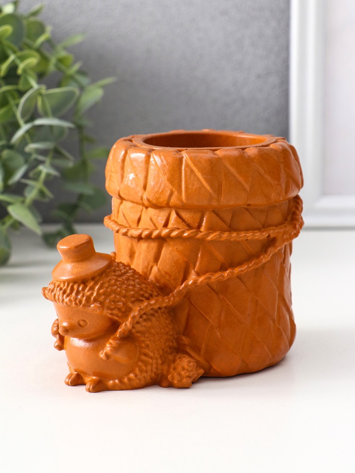 Карандашница сувенирная «Ёжик с корзиной», 9×8×12 см, красная глина