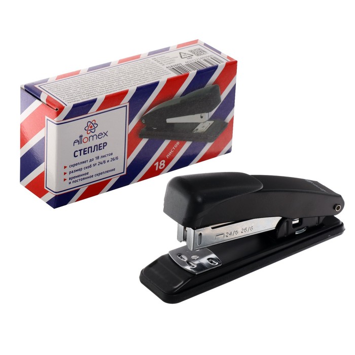 Степлер № 24/6 и 26/6 на 18 листов, deVENTE металлический, чёрный