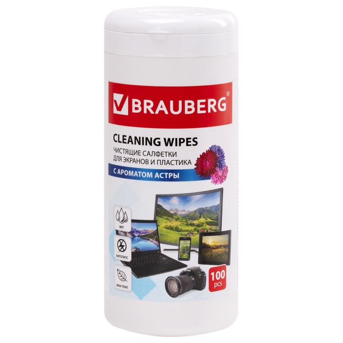 Чистящие салфетки для экранов и пластика, универсальные, «Астра», в тубе 100 штук, влажные