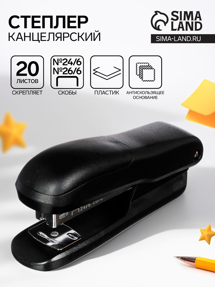 Степлер № 24/6 и 26/6, до 15 листов, Attomex, чёрный