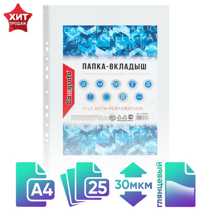 Файл - вкладыш Calligrata, А4, 30 мкм, глянцевый, вертикальный, 25 штук