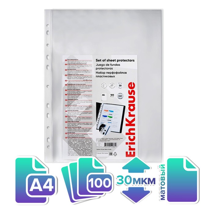 Файл - вкладыш ErichKrause Standard Plus, А4, 40 мкм, тиснение, вертикальный, 10 штук