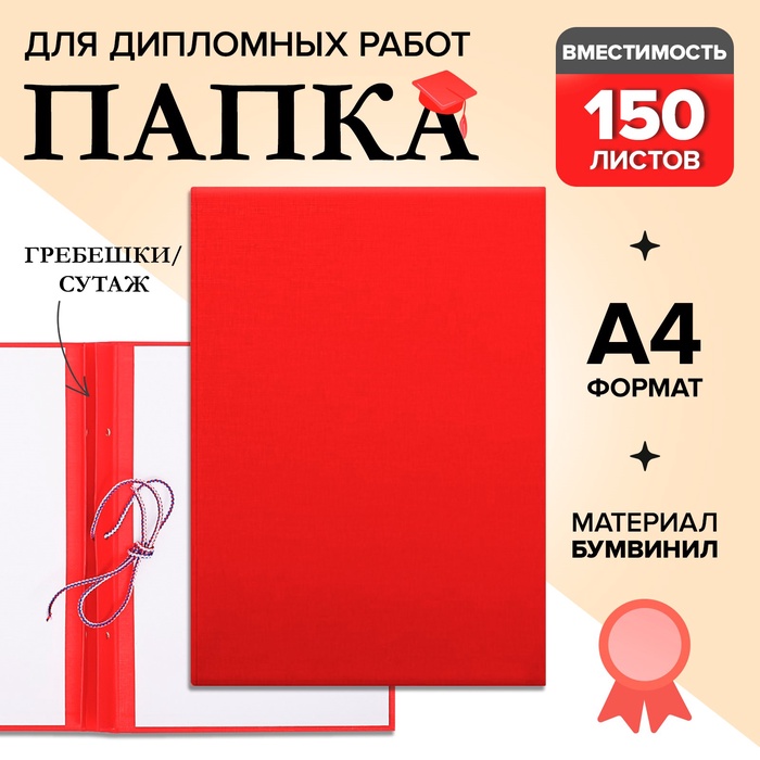 Папка "Дипломная работа" А4, бумвинил, гребешки/сутаж, без бумаги, цвет красный (вместимость до 150 листов)