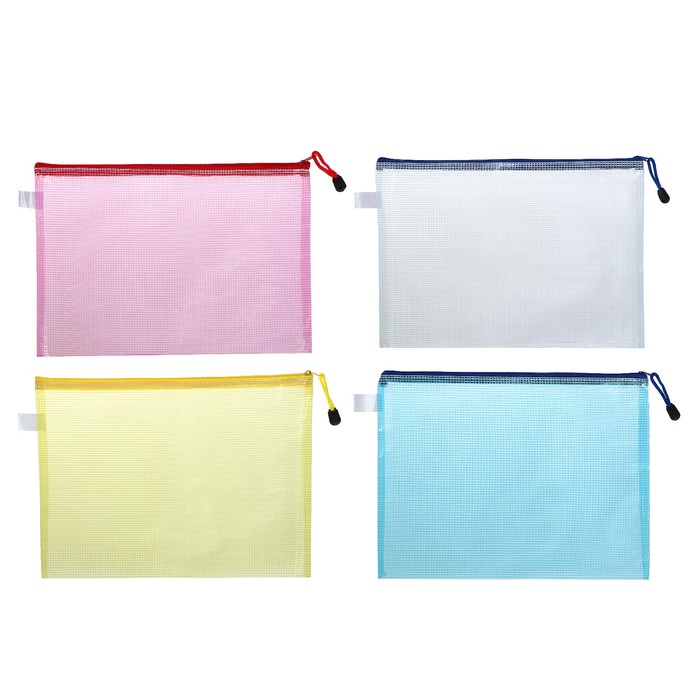 Папка-конверт на молнии, А65, с сеткой внутри, 24×11 cм, МИКС