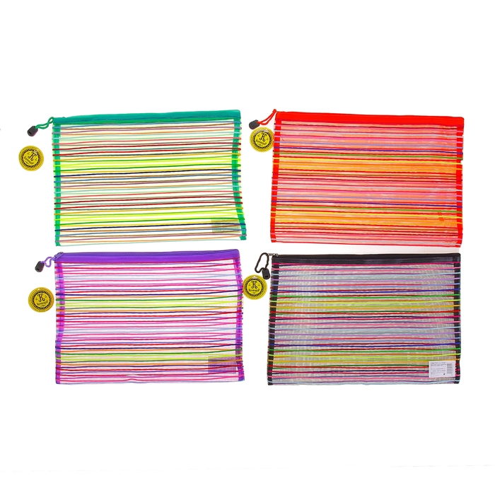 Папка-конверт "Полоска - сеточка" А4, на молнии, 23×34 см, МИКС