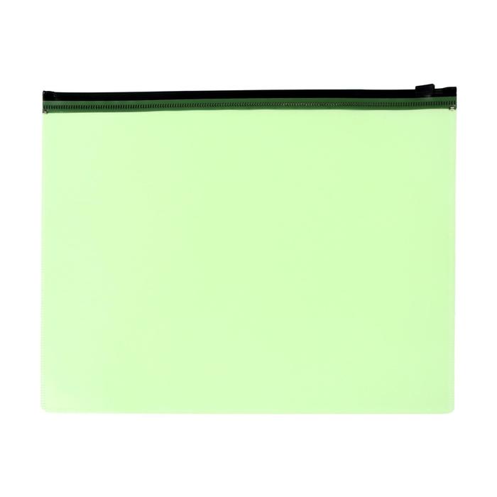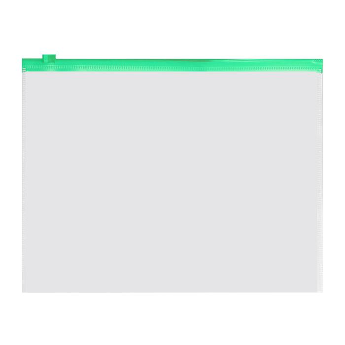 Папка-конверт на ZIP-молнии A5 150 мкм, Calligrata, прозрачная, зелёная молния