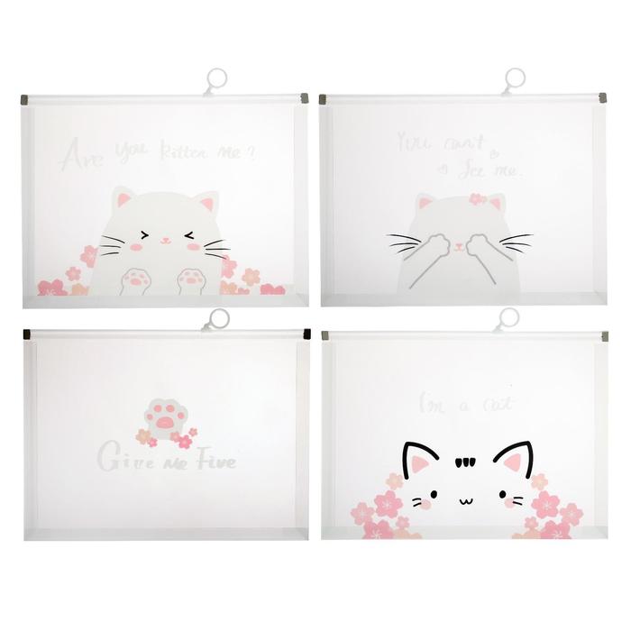 Папка-конверт на ZIP-молнии Calligrata «Кошки» А4, 180 мкм, прозрачная, МИКС