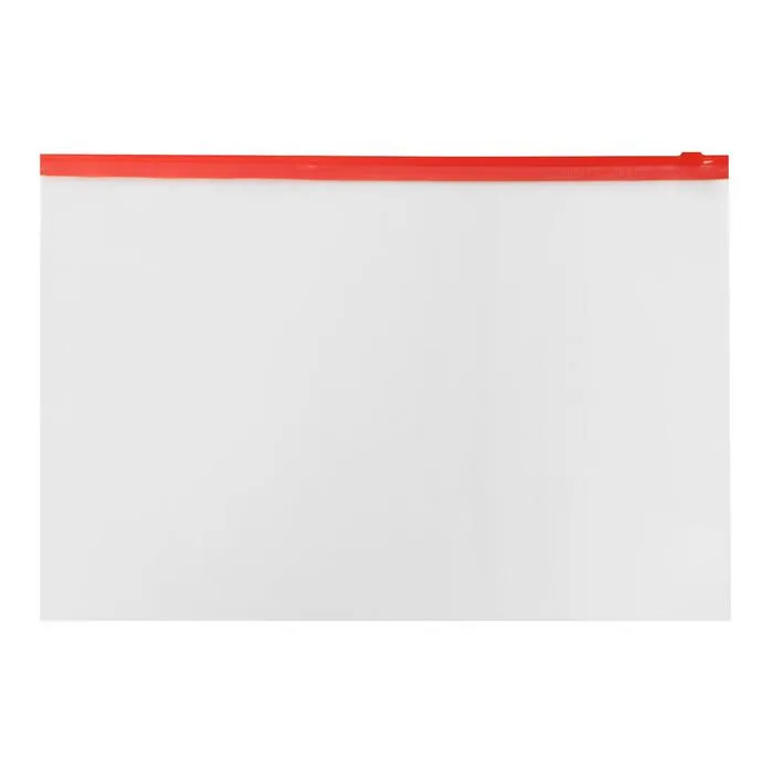 Папка-конверт на ZIP-молнии A4, 150 мкм, Calligrata, прозрачная, красная молния