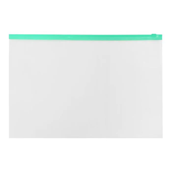 Папка-конверт на ZIP-молнии A4, 150 мкм, Calligrata, прозрачная, зелёная молния