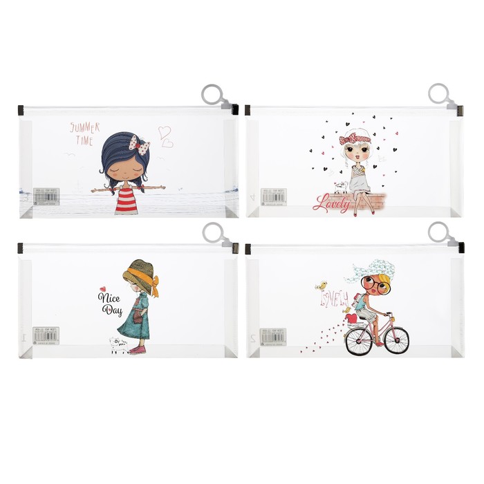 Папка-конверт на молнии формат А6, 180мкр, с рисунком «Маленькая девочка», МИКС