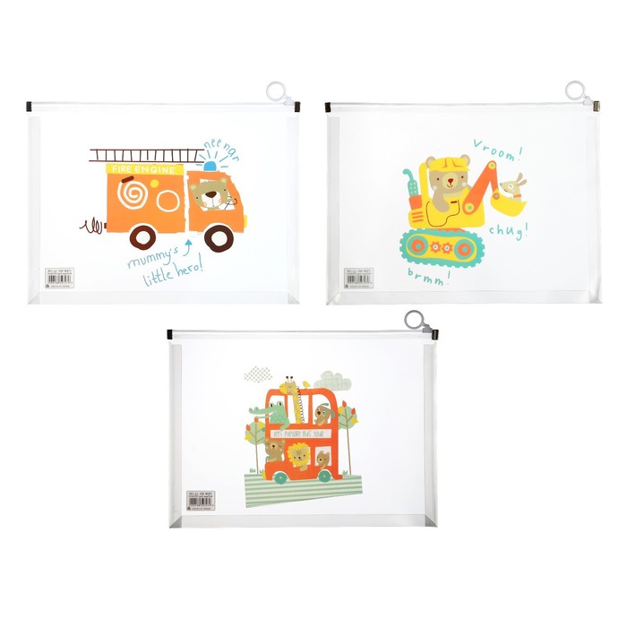 Папка-конверт на молнии формат А4, 180мкр, с рисунком «Веселая машинка», МИКС