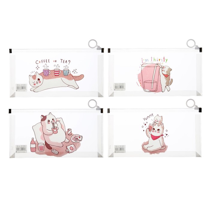 Папка-конверт на молнии формат А6, 180мкр, с рисунком "Кот", МИКС