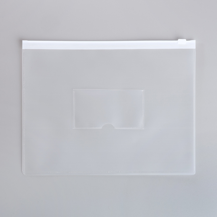 Папка-конверт на ZIP-молнии A5, 150 мкм, Calligrata, карман для визитки, прозрачная, белая молния