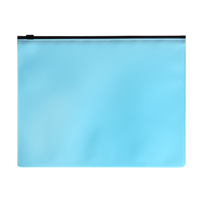 Папка-конверт на ZIP-молнии A5, 150 мкм, Calligrata Pastel, прозрачная, чёрная молния, голубая
