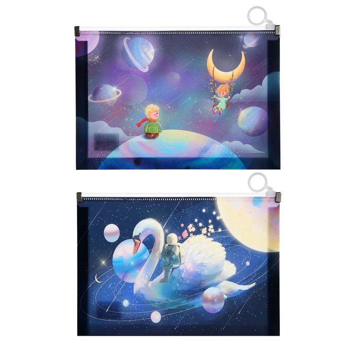 Папка-конверт на молнии формат А5, 180мкр, с рисунком «Космос», МИКС