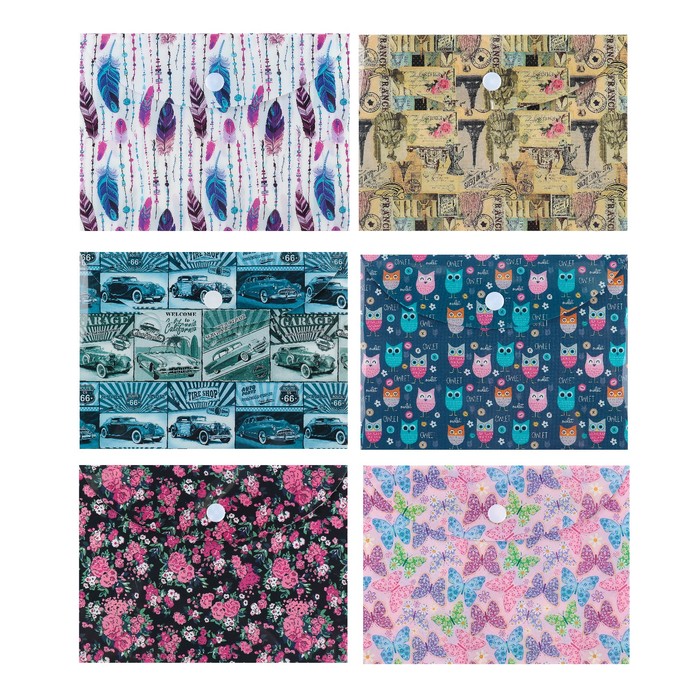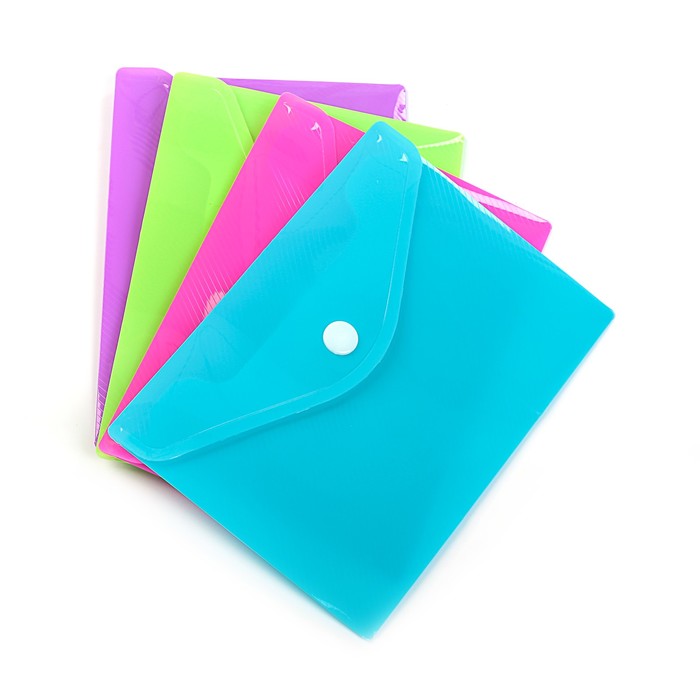 Папка-конверт на кнопке, А6, 180 мкм, МИКС