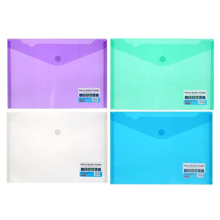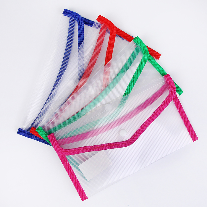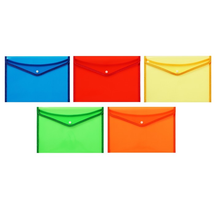 Папка-конверт на кнопке, В65, 330 мкр, жёсткая, с кантом, прозрачная, рифлёная, МИКС