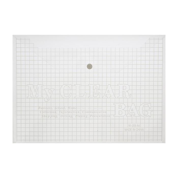 Папка-конверт на кнопке, А4, 180 мкм, Calligrata «Клетка», прозрачная