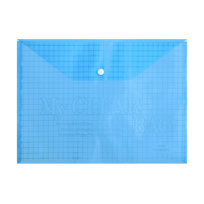 Папка-конверт на кнопке, А4, 80 мкм, «Клетка», тонированная, синяя