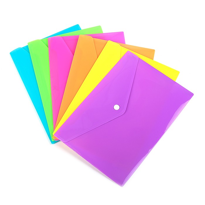 Папка-конверт на кнопке, А4, 180 мкм, «Цветной», МИКС