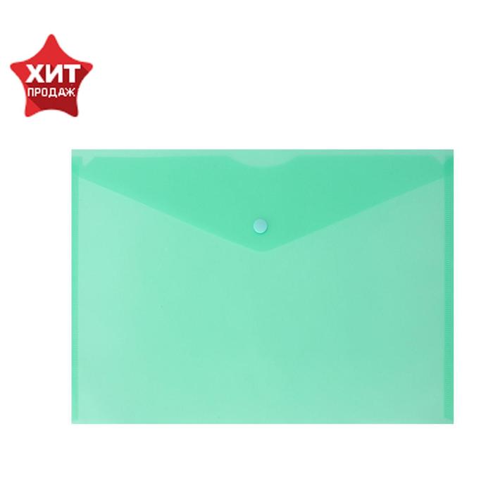 Папка-конверт на кнопке А4, 180 мкм, Calligrata Pastel, полупрозрачная, светло-мятный