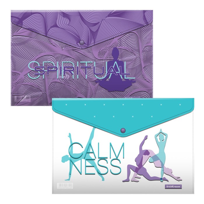 Набор из 4 папок-конвертов А4, 160 мкм, ErichKrause Meditation, полупрозрачный, глянцевый, микс с рисунком