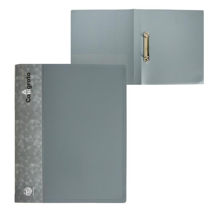 Папка на 2 кольцах А4, Calligrata, 27 мм, 700 мкм, внутренний и торцевой карман, серая