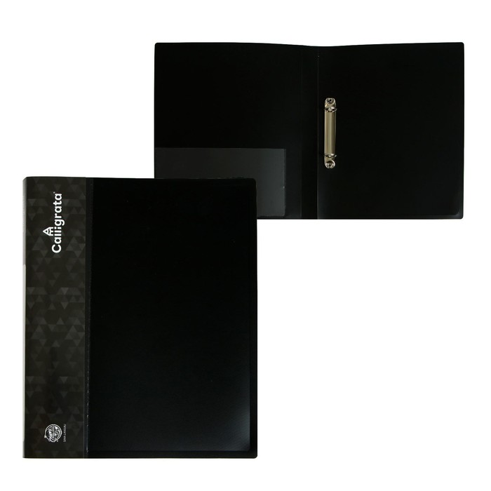 Папка на 2 кольцах А4, Calligrata, 27 мм, 700 мкм, внутренний и торцевой карман, черная